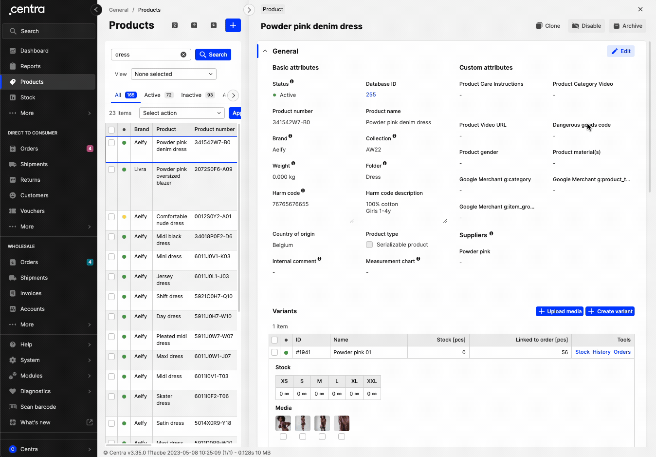 This can subsequently be used as a template for products where distinct measurements for each garment can be entered. - In such cases, you can enter the specific measurements on the product itself. In the Basic attributes of the product, click 'Edit' and select the Measurement chart in the respective field. Untick the ‘Inherited from Measurement chart’ box, which allows you to input your own values as seen below:
