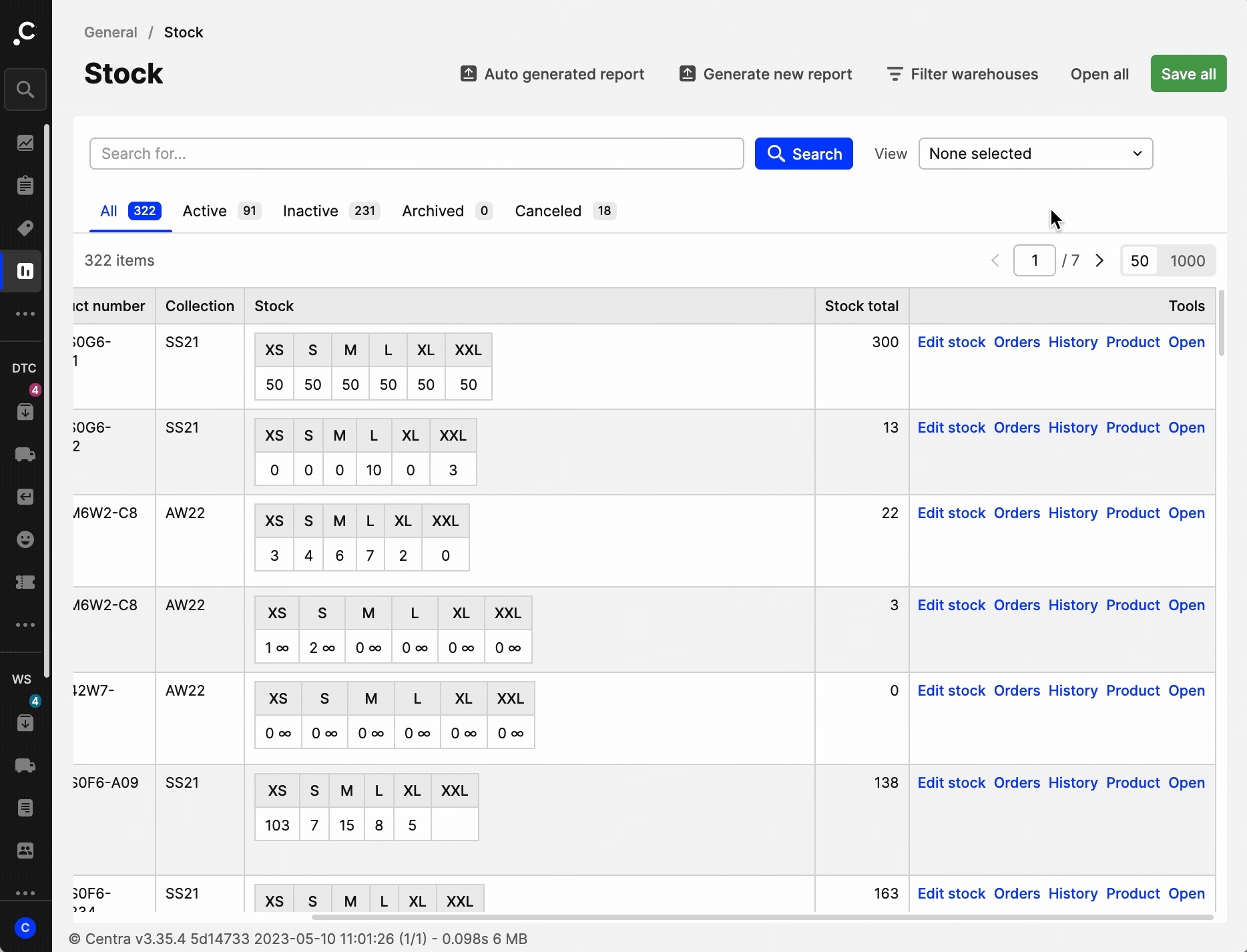 The values of warehouses with ‘Stock master: External’ are not editable. You will also see a note under the size chart of the ‘Rearrange stock’ column with the following message: ‘Stock not editable due to External Stock master.’