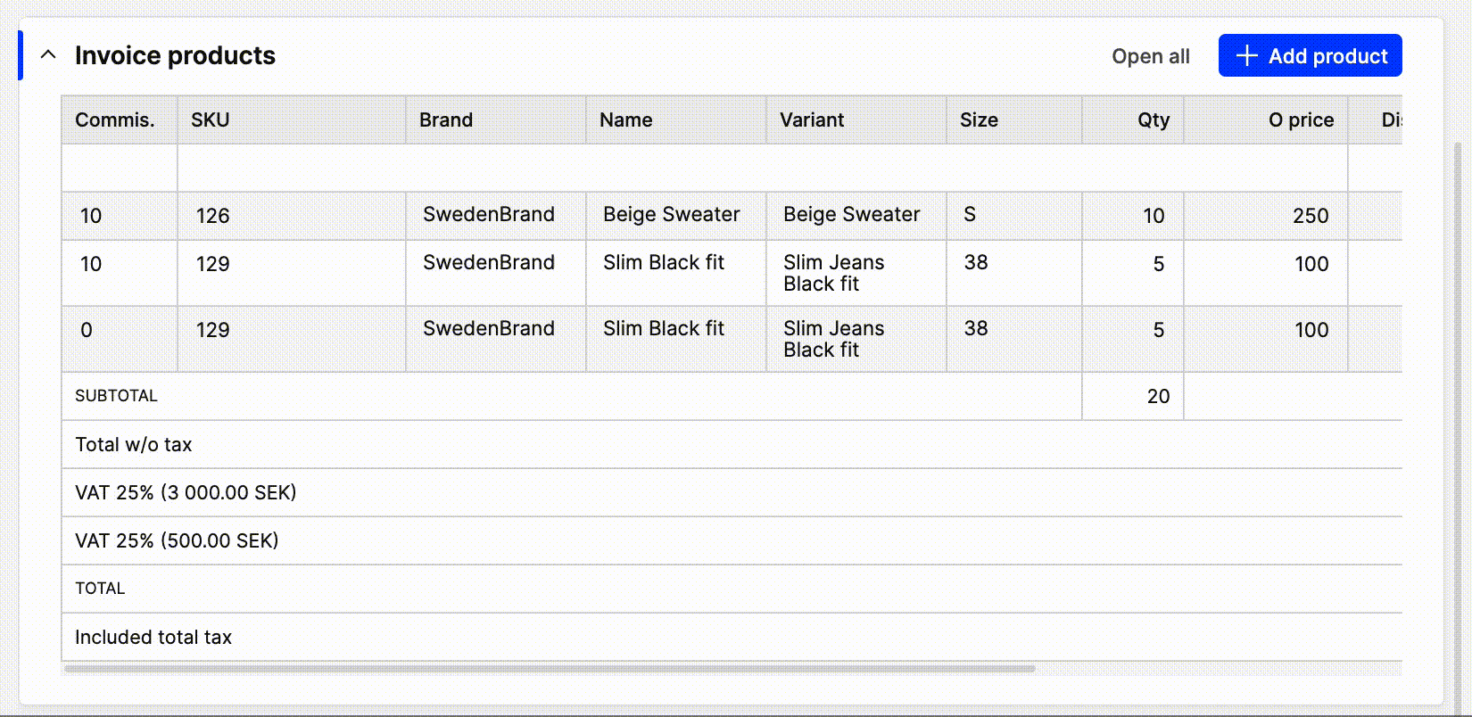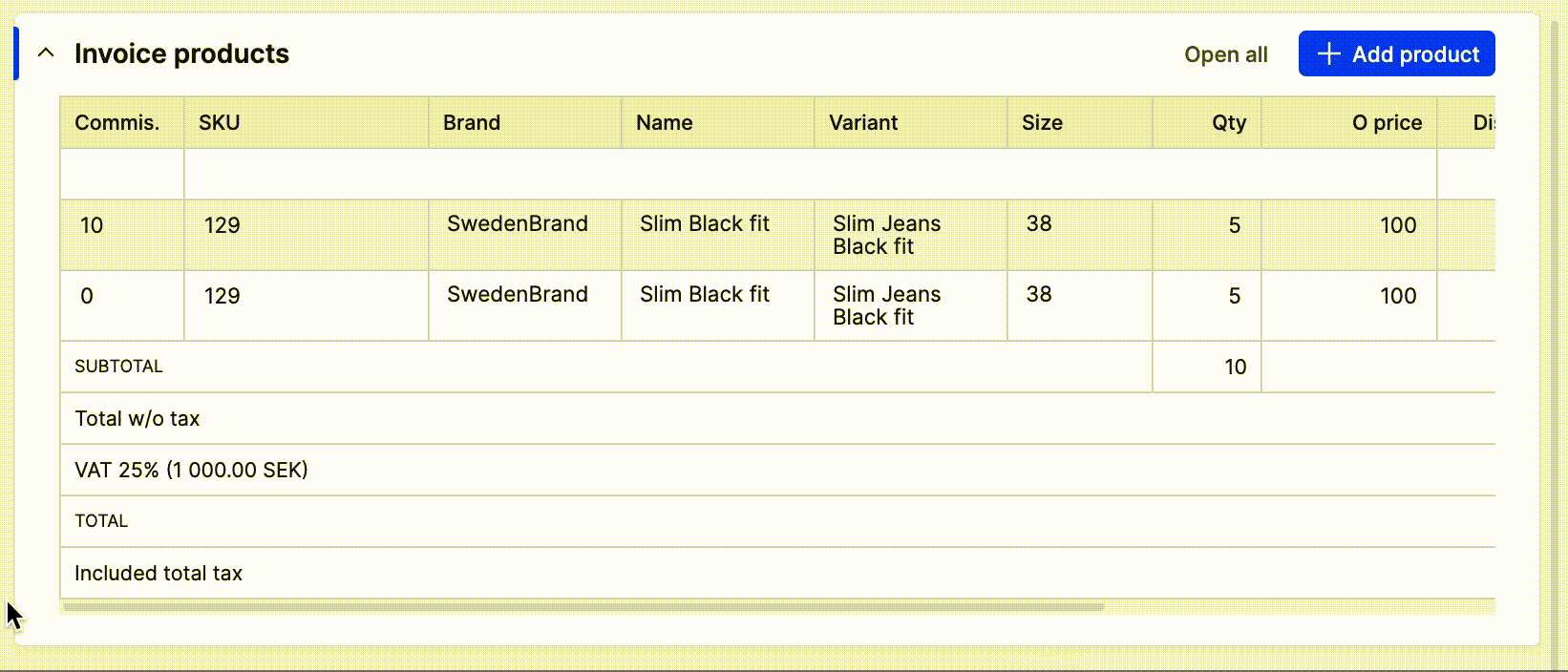 The Invoice now includes all products and you will see in the Invoice history that it’s been merged.