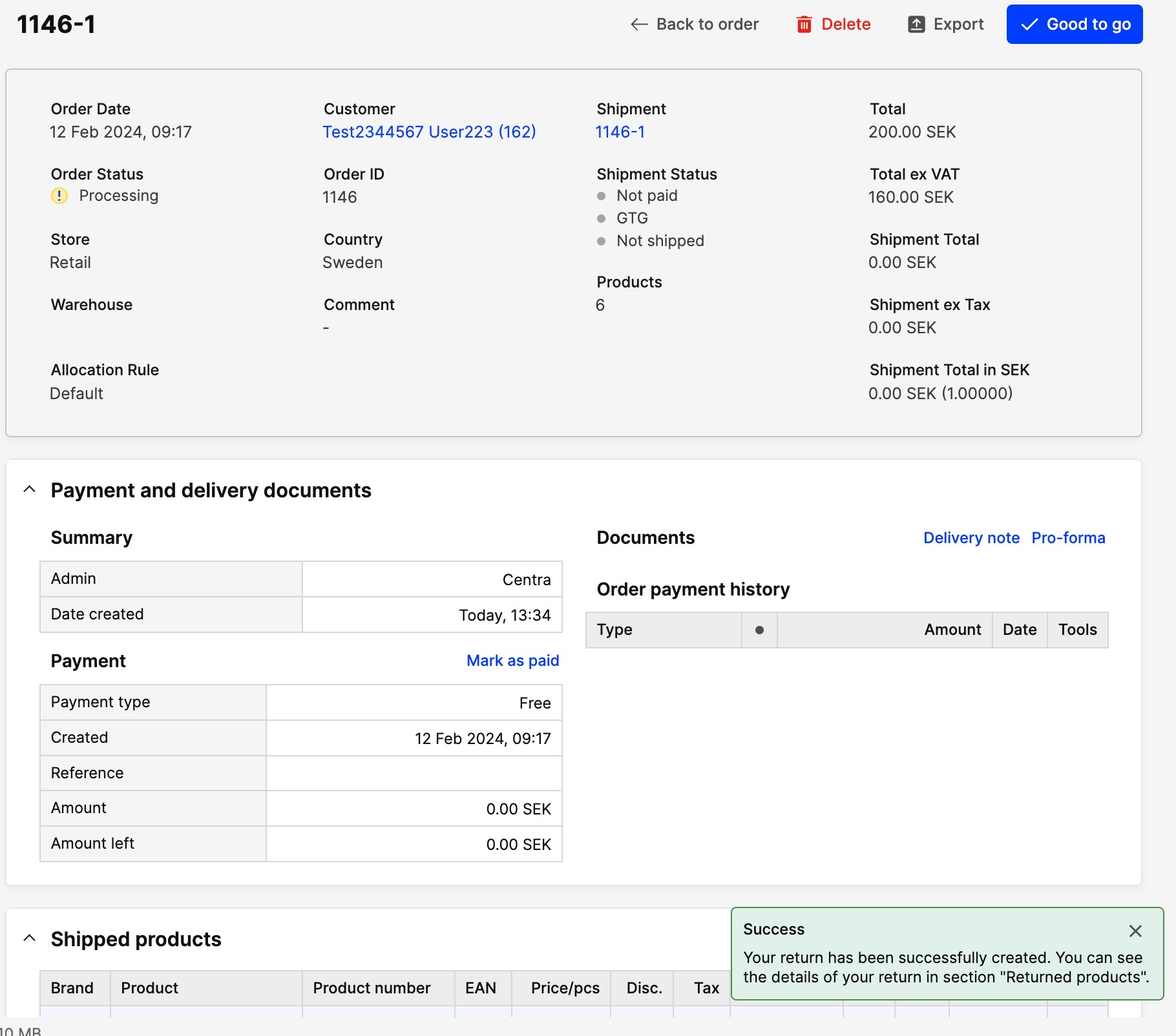 - Notifications added to Centra UI for successful actions, e.g. when creating a return or credit note.