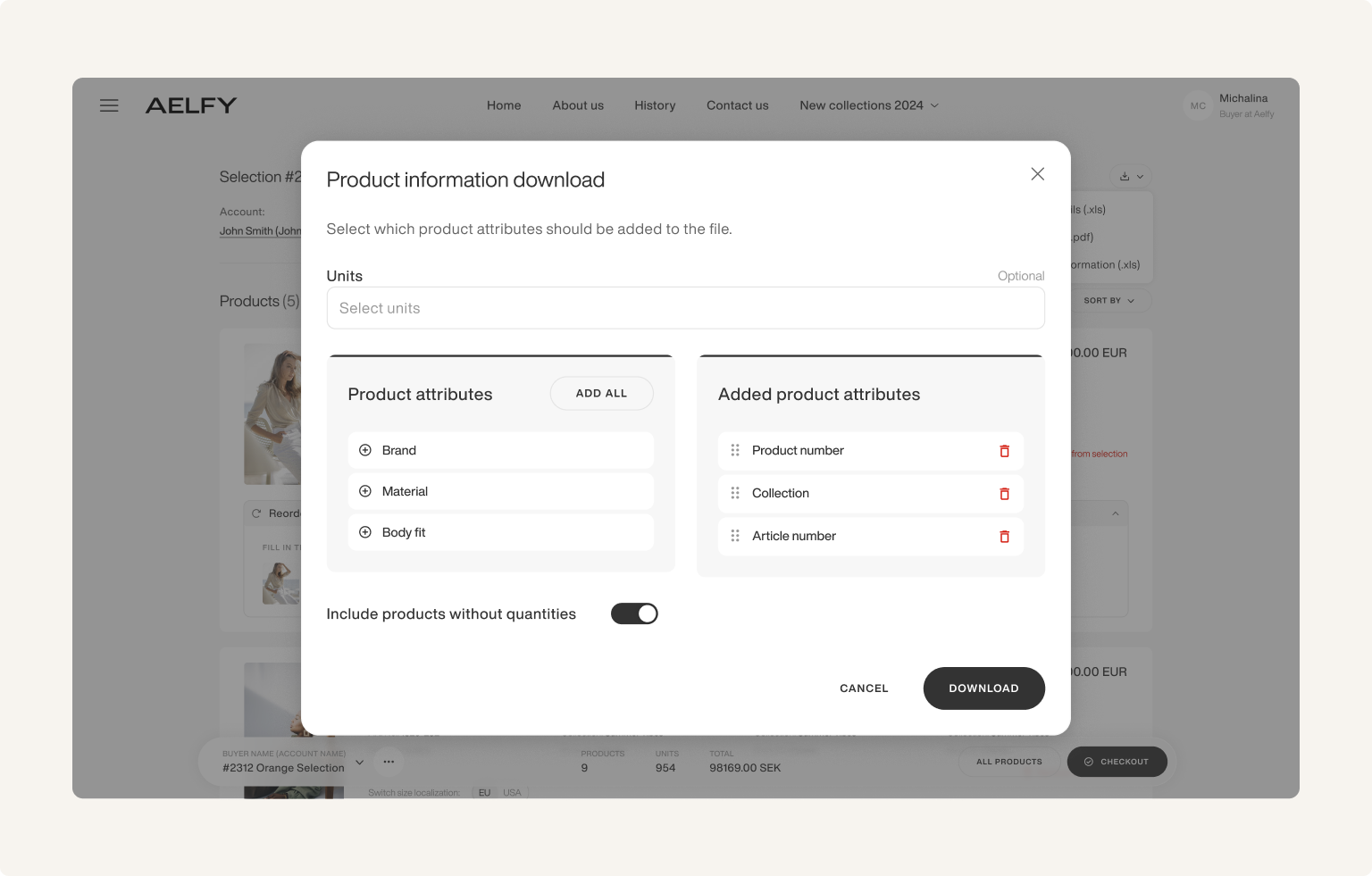 - Important: It’s now possible to export product information on the products in the selection that weren’t quantified yet (no units were added)